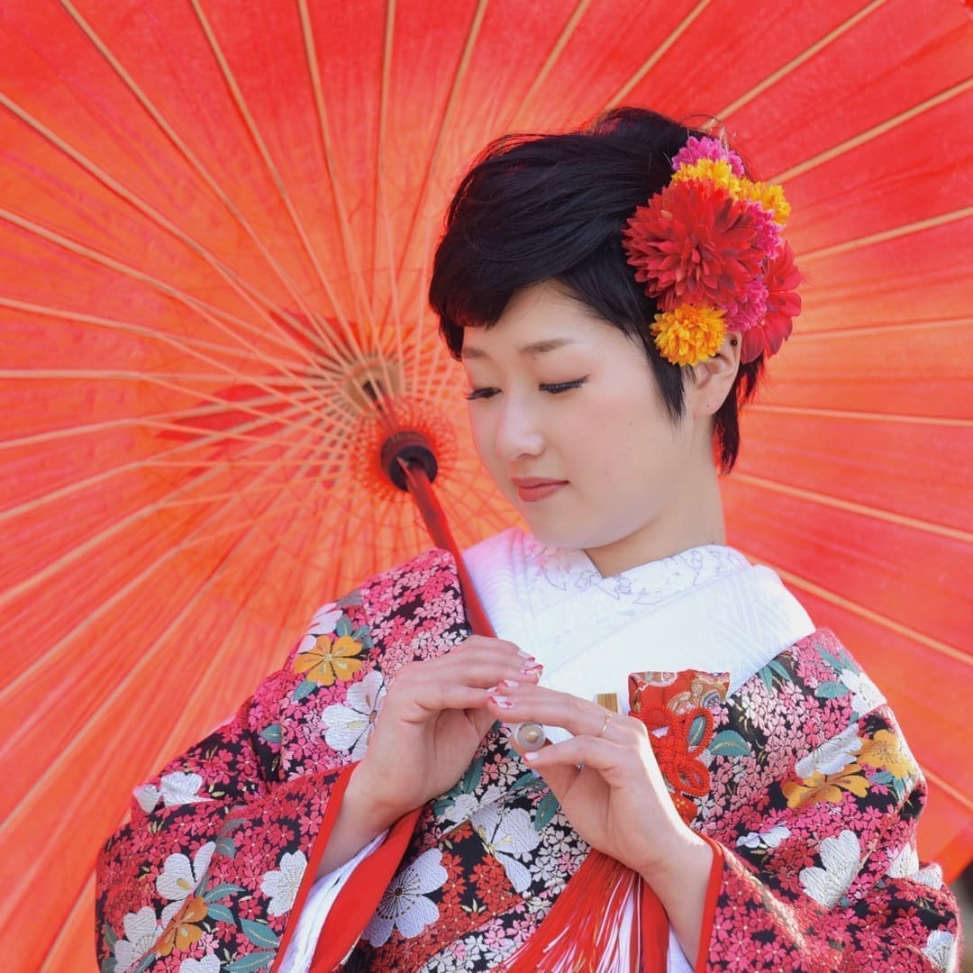 ショートの場合は首元がスッキリするので大きな髪飾りも似合います。