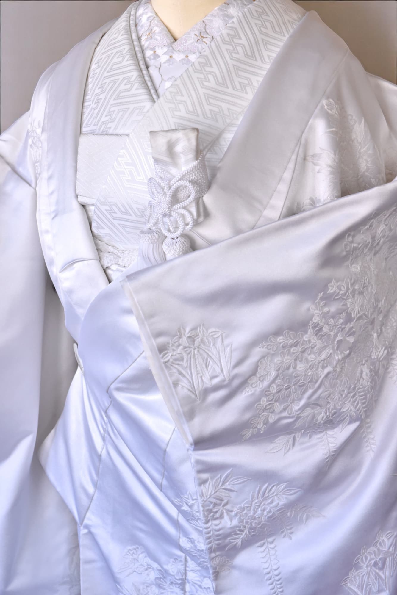 立体感のある藤の刺繍を施した真っ白な白無垢です。