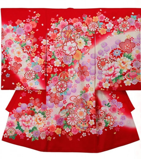 写真初着:レンタル初着・赤色・鼓と桜(R1)