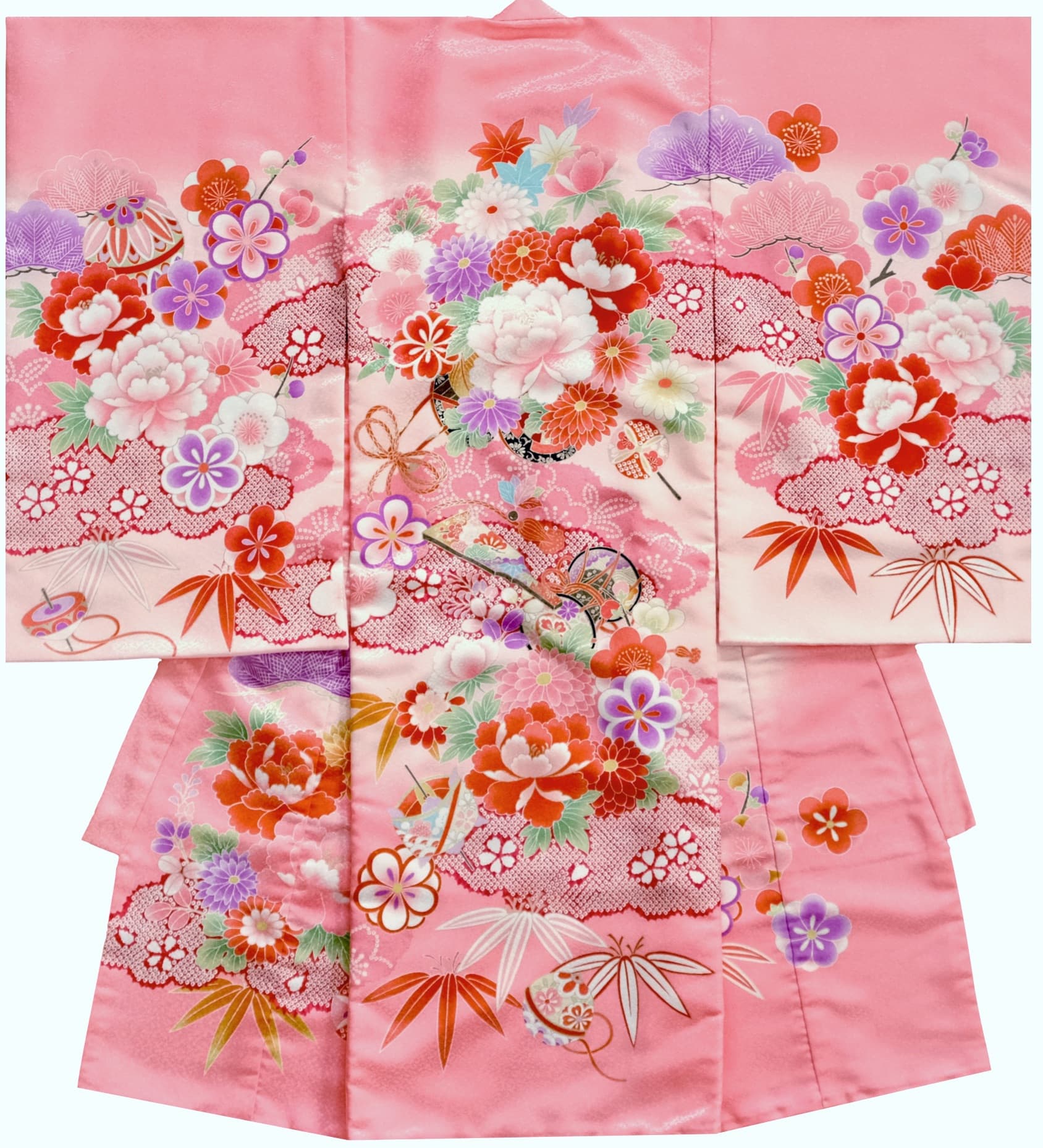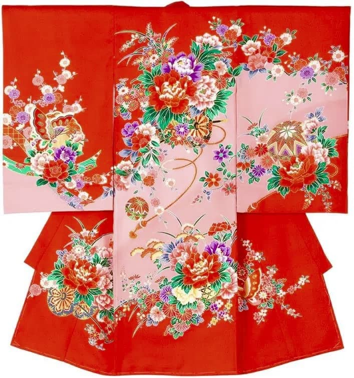 写真初着:レンタル初着・赤色・鼓と桜(R1)